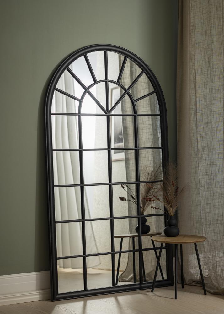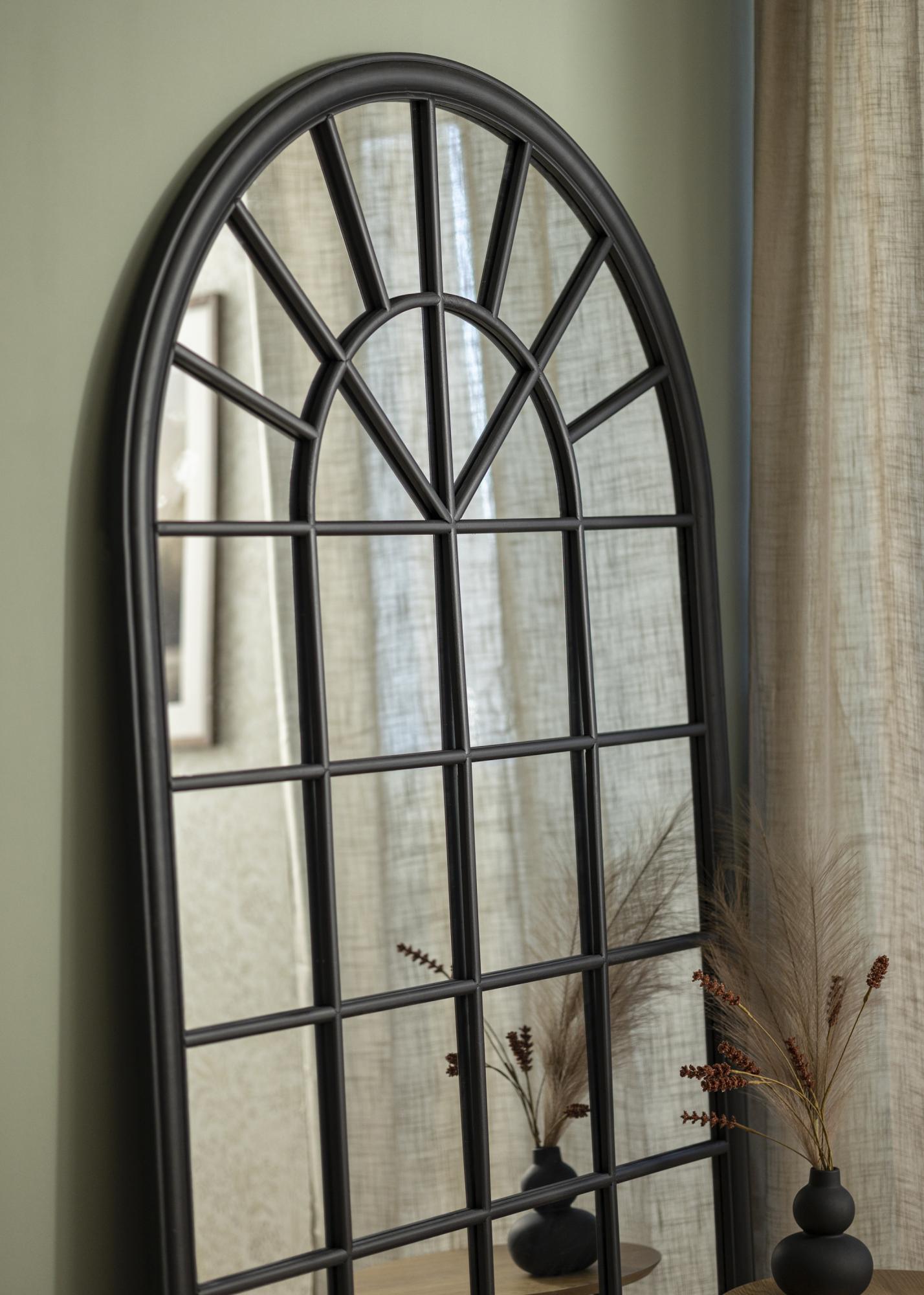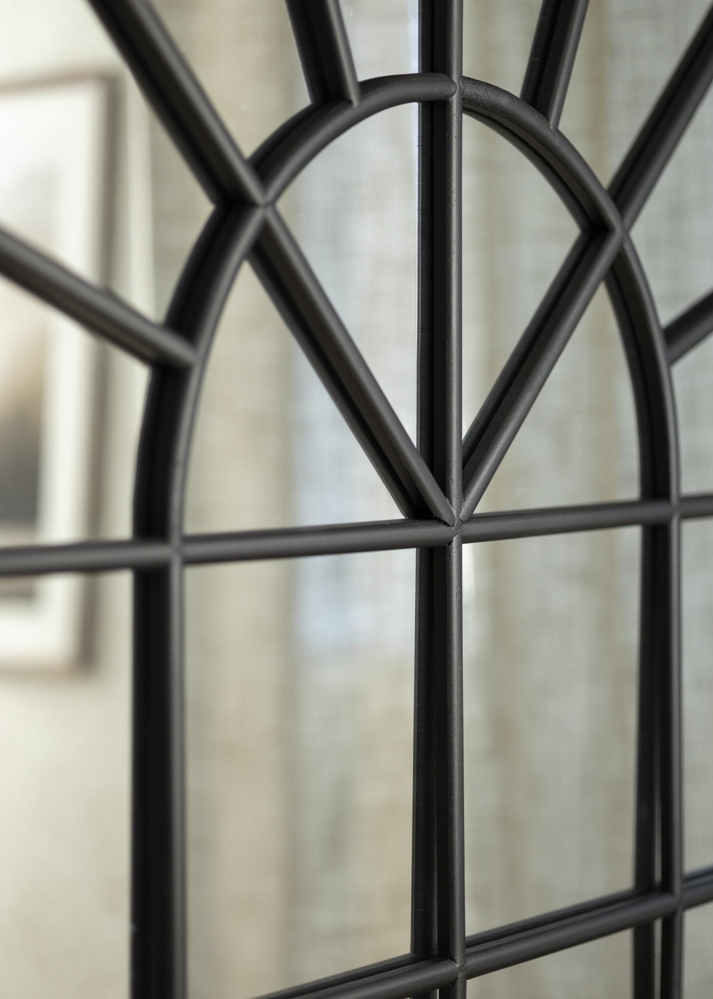 Atraskite išskirtinį veidrodžio buvimą, tikrą akį traukiančią detalę kiekviename kambaryje. Su įspūdingais 103x180 cm išmatavimais šis veidrodis ne tik teikia praktinę funkciją, bet ir tampa jūsų interjero dalimi. Jo įspūdinga pusapvalė arka viršuje papildo įspūdingas lango panašus tinklelis, suteikiantis veidrodžiui išskirtinę industrinę estetiką.