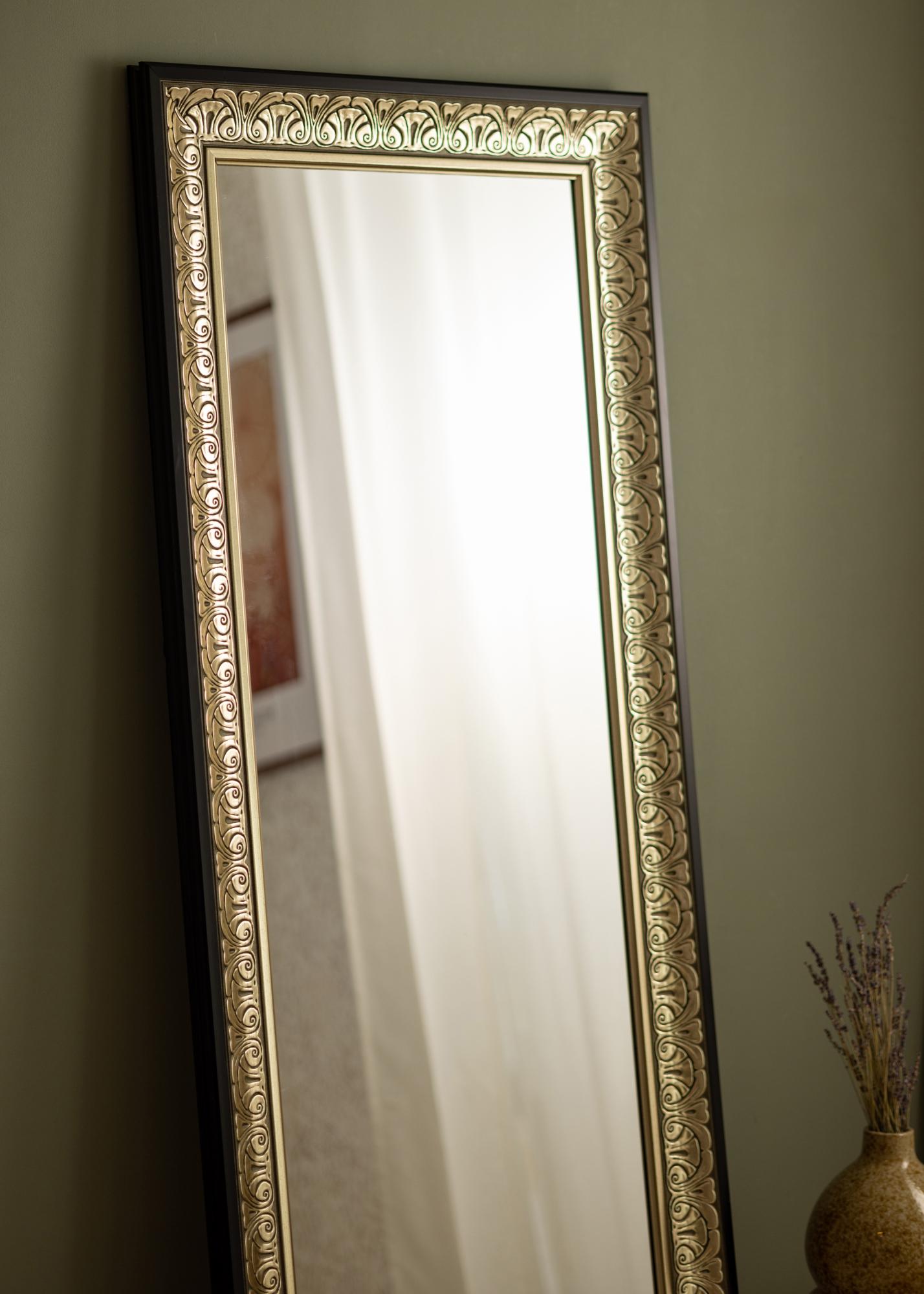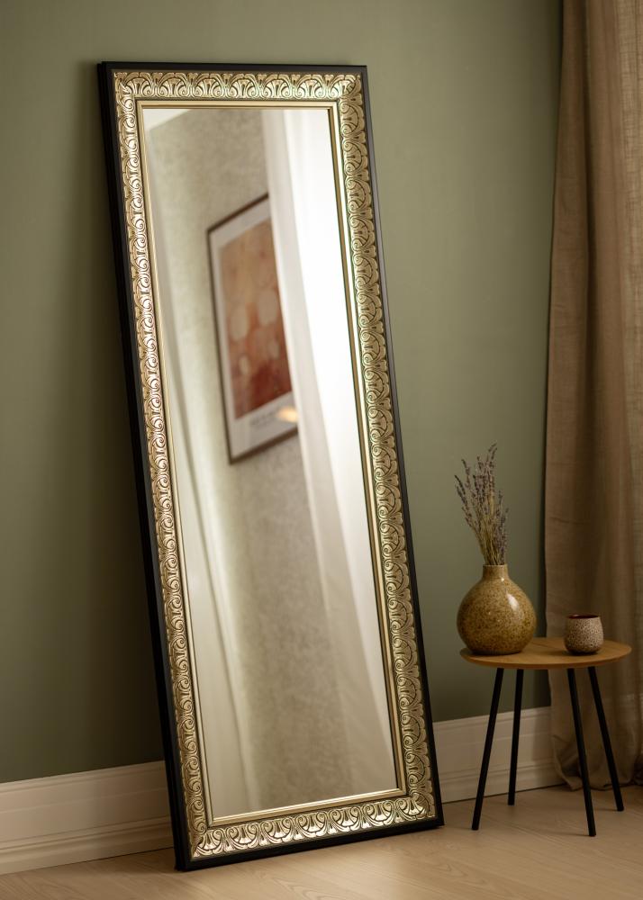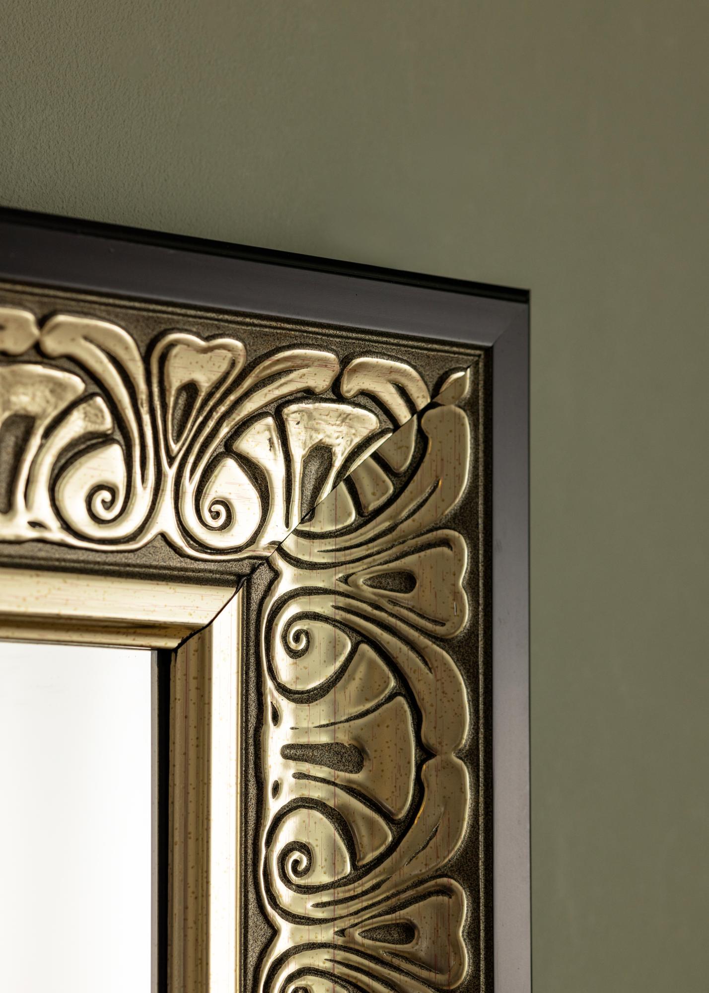 Stilingas sidabrinės spalvos ornamentuotas veidrodis, puikiai tinkantis tiek drabužių spintai, tiek prieškambariui ar vonios kambariui. Veidrodžio rėmas, su jo laiko neįveikiamu raštu, tinka visų tipų interjero stiliams, nuo romantiškų pastelinės spalvos moteriškų miegamųjų iki labiau minimalistinių ir švarių aplinkų, kur veidrodis sukuria kontrastą. Jis taip pat puikiai atrodo kabantis virš komodos ar bufeto, suteikiantis kambariui daugiau erdvės pojūtį.