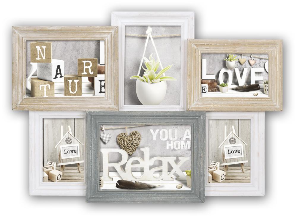 Tegul šis žavus koliažinis rėmelis suteikia natūralumo ir atsipalaidavimo pojūtį jūsų namams! Rėmyje telpa 6 nuotraukos skirtingais formatais. Juostelės yra medžio spalvos, pilkos ir baltos su nusidėvėjimo detalėmis.