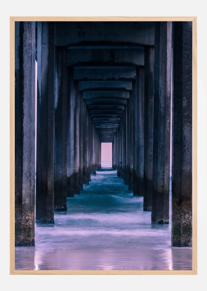 Tamsus plakatas su koridoriumi, vedančiu į šviesą tunelio gale. Stori tamsiai mėlyni stulpeliai rėmina šviesiai mėlyną taką, nors viršuje esantis stogas taip pat yra gana tamsus ir grėsmingas. Sekite šviesesnį kelią, kad pasiektumėte ryškią šviesą tolumoje ir suteiktumėte gylio kambariui taip pat.