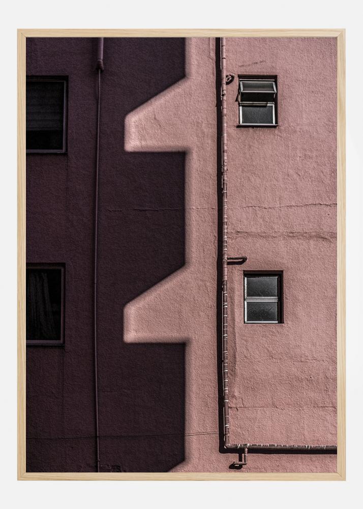 Pastatas su tamsiai rausvos spalvos pastato išorine dalimi. Šešėliai ir šviesa meta keistas formas pastato šone. Langai atrodo kaip akys, išdėstyti taip, kad šešėliai atrodytų kaip nosys, todėl atrodo, kad šis vaizdas žiūri atgal į jus.