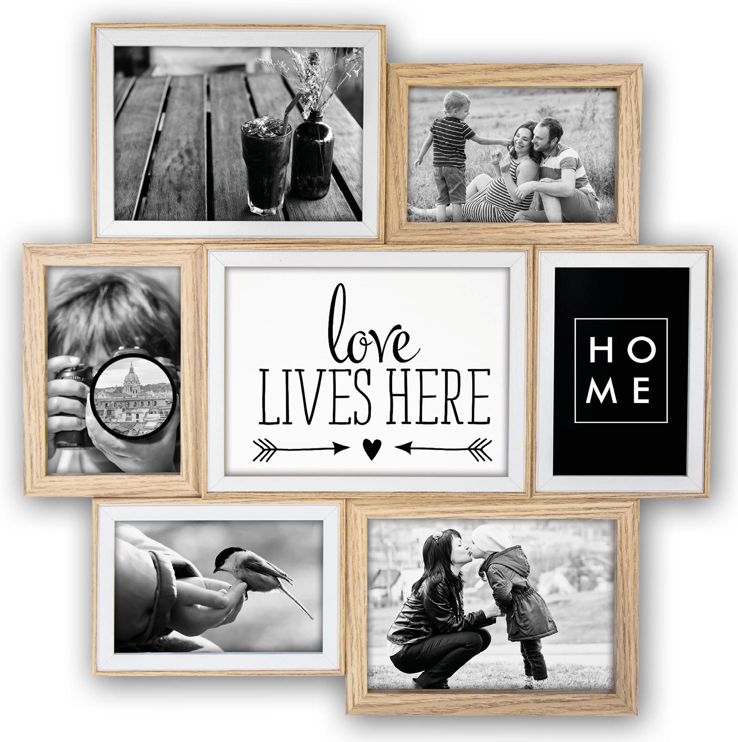 Sku:Stilingas medinis koliažo rėmas, skirtas 7 nuotraukoms įvairių dydžių.