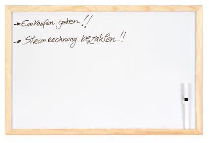 Rašomoji lenta su paprastu mediniu rėmeliu, puikiai tinkanti tiek biure, tiek koridoriuje.