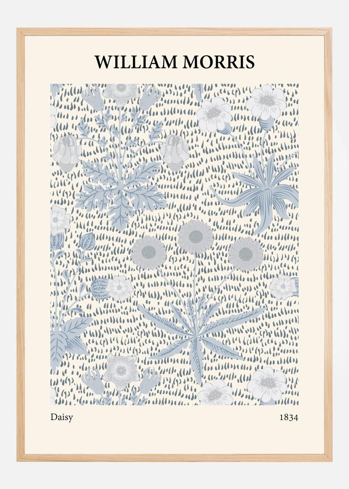 Šis žavingas plakatas rodo William Morris' klasikinį raštą "Daisy" iš 1834 metų. Tai subtilus ir žavus dizainas, pasižymintis mėlynais atspalviais ir grakščia gėlės, pagal kurią jis pavadintas, reprezentacija. Subtilūs žalios spalvos akcentai tarp lapų suteikia gyvybės šviesiam ir oriam fonui, todėl tai yra nesenstantis dizainas, kuris vis dar mėgstamas šiandien.