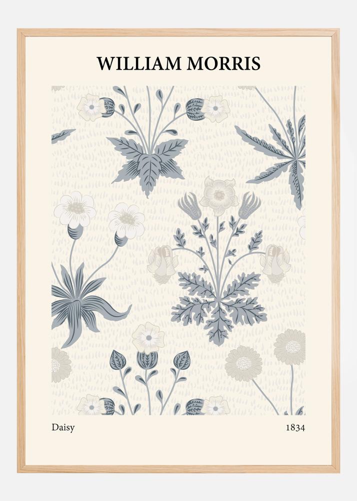 Šis nuostabus plakatas kviečia žiūrovą į Williamo Morriso pasaulį su raštu "Daisy" iš 1834 metų. Tai nesenstanti dizaino kūrinys, kuris žavingai užfiksuoja gamtos paprastumo esmę, perblyškusiais mėlynais ramunėlių žiedais ir grakščiai išdėstytais žaliais lapais. Visa kompozicija alsuoja ramia harmonija, kuri yra tokia pat aktuali dabar, kaip ir tada.