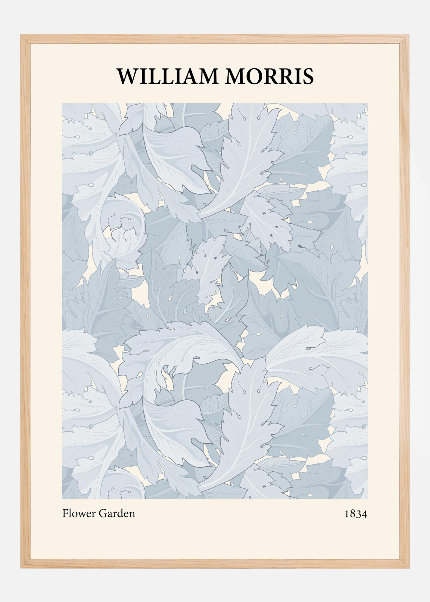 Su ramios ir elegantiškos atmosferos, ši William Morris afiša pristato vingiuotų lapų simfoniją vėsioje ir ramioje spalvų gamoje. "Gėlių Sodas", kaip rodo pavadinimas, užfiksuoja vešlaus ir tyliojo sodo esmę per savo detalių lapų raštą, kuris švelniai ritmiškai perduoda per paviršių. Spalvų paletė kruopščiai parinkta, kad atspindėtų gamtos subtilų grožį, ir apima dangaus mėlyną, lapų žalią ir švelnią kreminę spalvą, kurios kartu sukuria harmoningą ir subalansuotą estetiką.