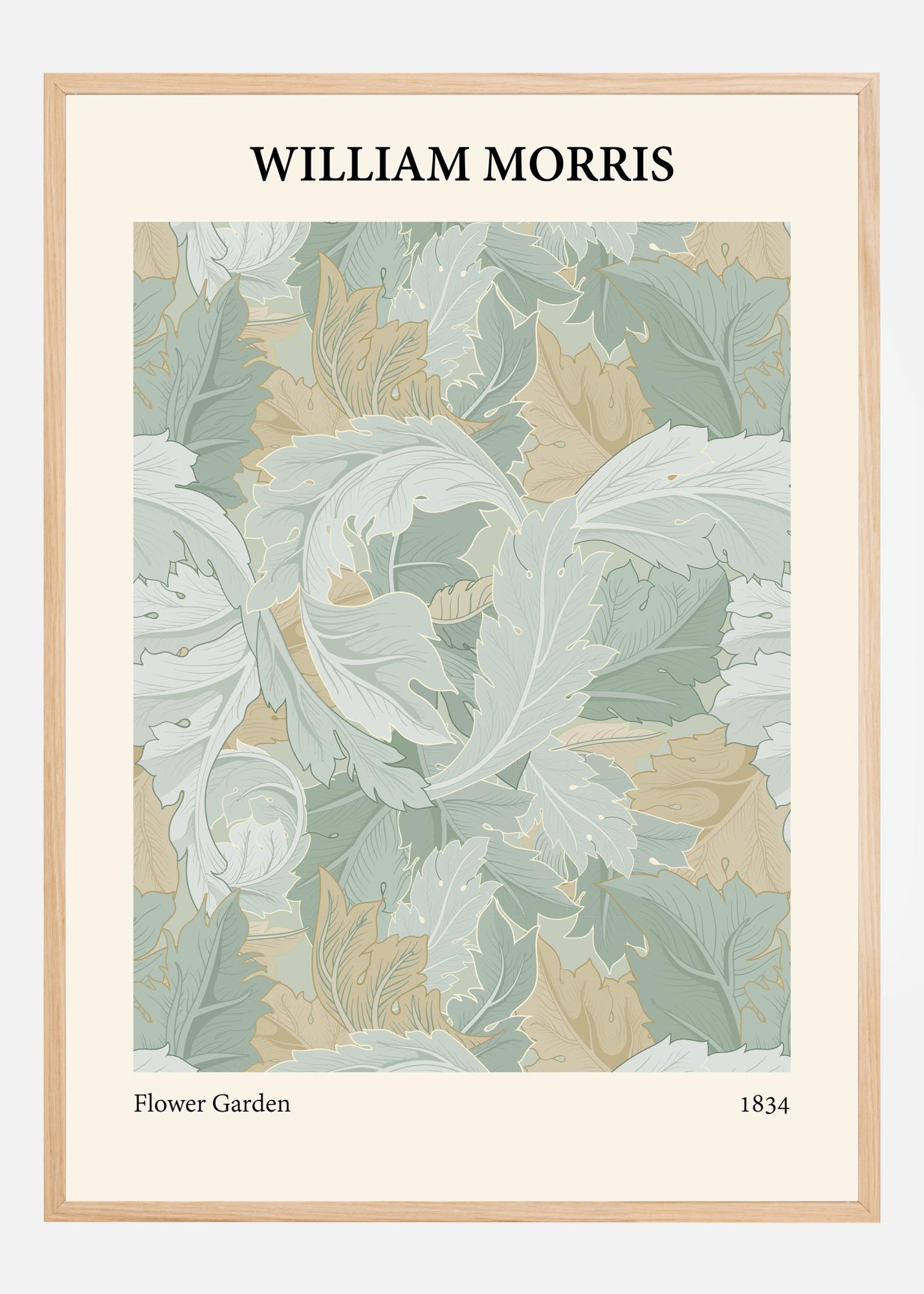 Šis elegantiškas ir kerintis plakatas yra duoklė Williamui Morrisui ir jo nepamirštamoms dizaino bei meno indėlėms. Su savo "Gėlių Sodas" motyvu, šis spaudinys pateikia rafinuotą lapijos ir gėlių formų kompoziciją, susipinančią raminančių melsvai žalių ir šiltų smėlio spalvų paletėje. Kiekvienas elementas sukurta Morrisui būdingu detalių gausumu, kuris sukuria gilumo ir sudėtingumo jausmą, kurį galima vertinti kiekvieną kartą pažvelgus.