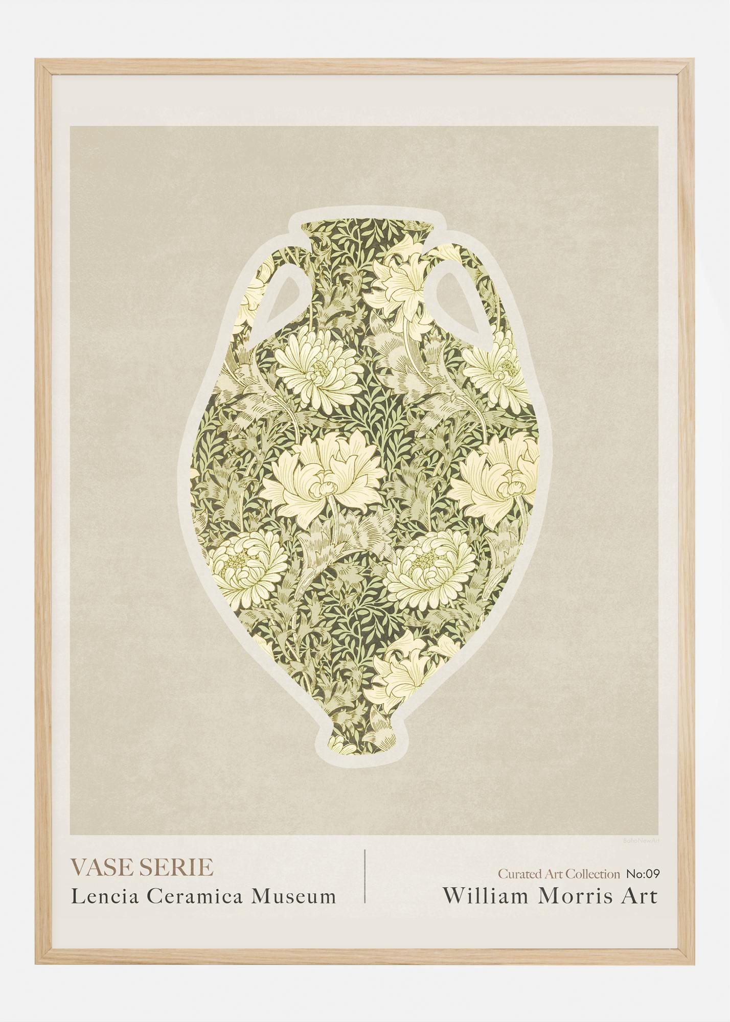 Šis elegantiškas ir detalus plakatas yra dalis mūsų „Kuruotos meno kolekcijos“ ir yra įkvėptas William Morris, piktogramos motyvų kūrimo mene ir lyderio menų ir amatų judėjime. Plakatas vaizduoja stilizuotą vazą, puošniai papuoštą vienu iš Morriso klasikinių, botaninių dizainų. Laiko nepavaldus iliustracijos atspindi vertinimą amatams, detalumui ir natūralaus pasaulio estetikos supratimą.