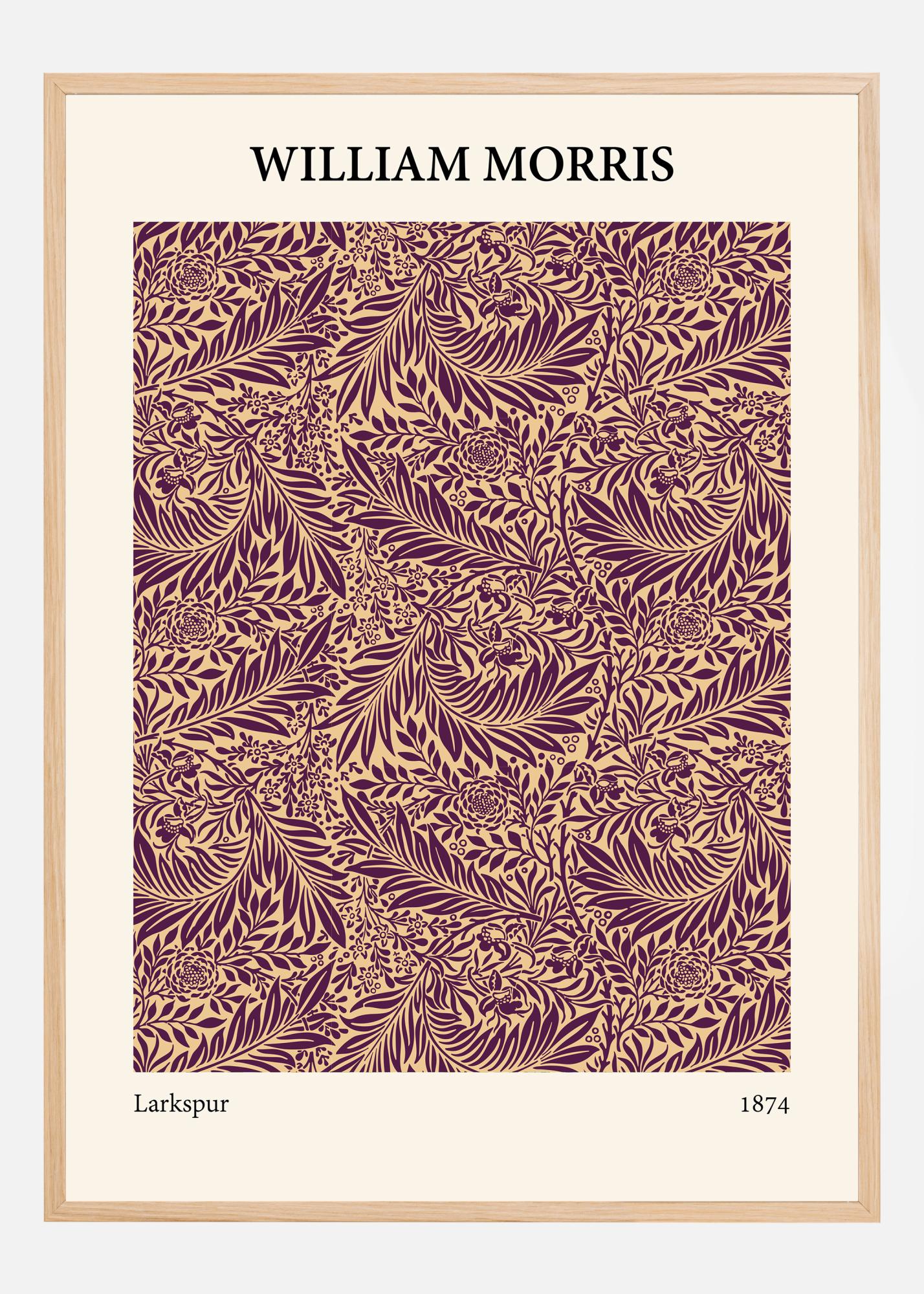 Šis drąsus ir įtraukiantis Williamo Morris raštas yra plakatas, kuris atgaivina klasikinį "Larkspur" dizainą iš 1874 metų. Su gyva bordo ir smėlio spalvų palete šis kūrinys perteikia Morriso meilę gamtai ir raštams. Jo meistriškas darbas su formomis ir spalvomis pabrėžia kiekvieną lapijos ir žiedų detalę, todėl plakatas išsiskiria kaip reikšmingas dekoratyvinis akcentas.