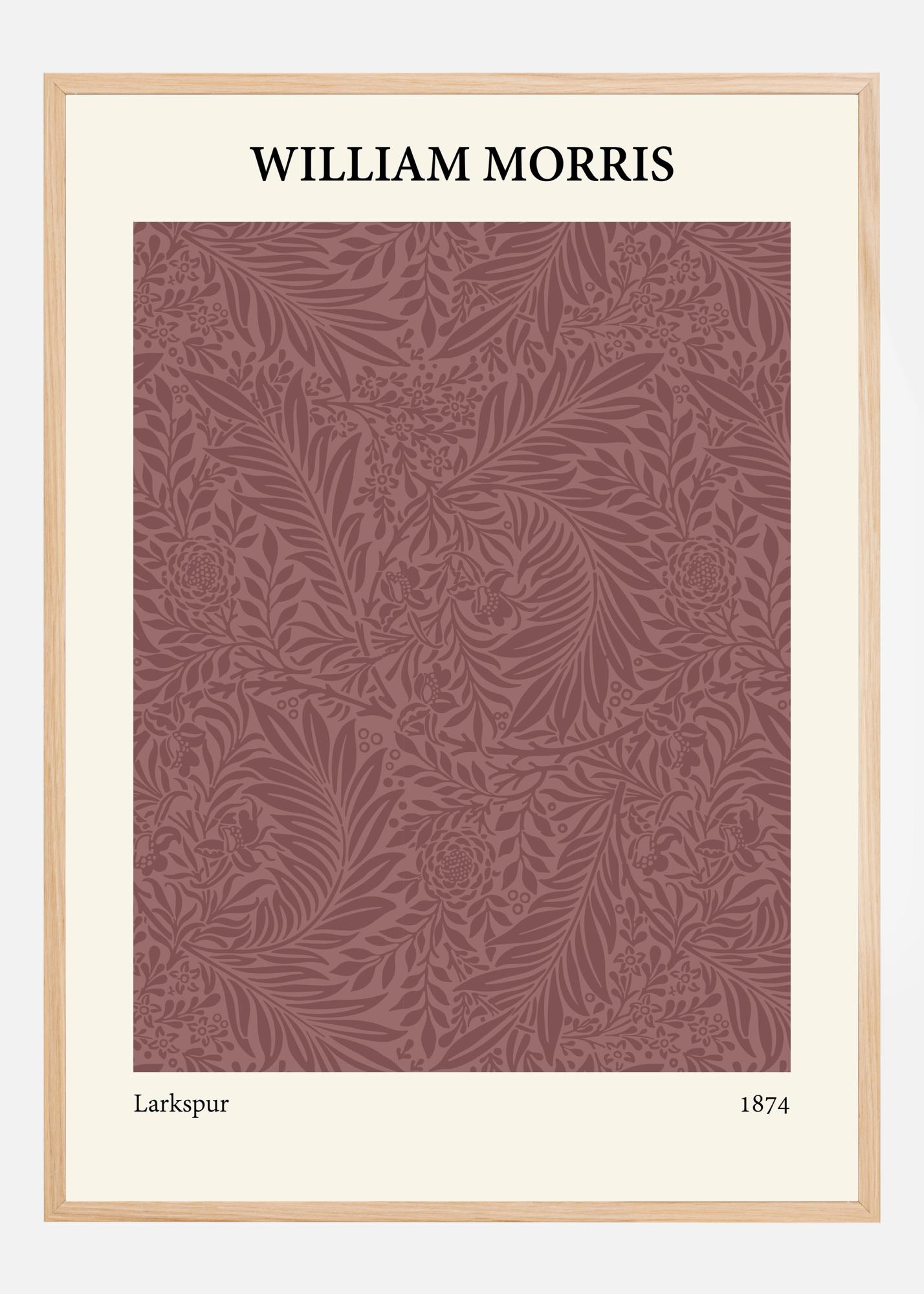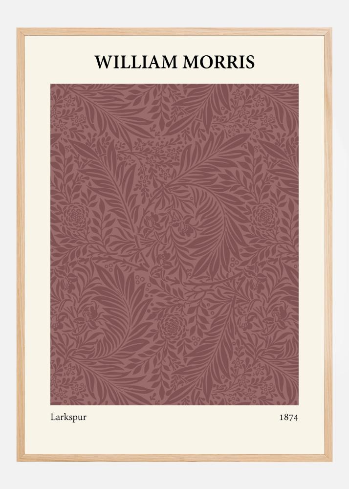 Šis plakatas yra Viljamo Moriso nesenstančio kūrinio "Larkspur" iš 1874 metų reprodukcija ir jis rodo hipnotizuojantį gėlių raštų išdėstymą šiltais ir kviečių atspalviais. Dizainas, žinomas dėl savo detalumo ir organinės estetikos, yra klasikinė Moriso meilės gamtai ir jo meninių įgūdžių Arts and Crafts judėjime reprezentacija. Puikiai tinkantis tiems, kurie vertina meno istorinius spausdinius ir nori savo namams suteikti victorinės žavesio.