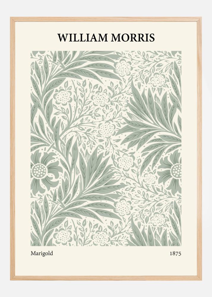 Šis išskirtinis plakatas pristato William Morris dizainą "Marigold" iš 1875 metų, kuris demonstruoja gamta įkvėptus motyvus su neabejotinu meistriškumu ir dėmesiu detalėms. Ryški, bet subtili žalios spalvos paletė yra būdinga Morris dizainui ir suteikia gyvybės kiekvienam lapui ir žiedlapiui, paversdama meninį kūrinį laikui nepavaldžia interjero klasika.