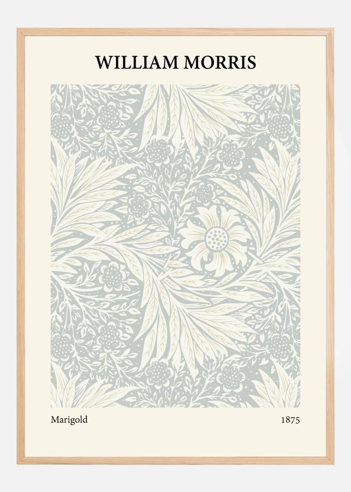 Šis plakatas yra stilinga William Morris' klasikinio "Marigold" rašto iš 1875 metų interpretacija, atkurta švelnia ir raminančia spalvų palete. Dizainas yra simfonija sudėtingai supintų gėlių ir lapų, kurie kartu sukuria atpalaiduojančios anglų sodo jausmą. Morris' meilė gamtai ir rankdarbiams spindi kiekvienoje šio sudėtingo kompozicijos detalėje.