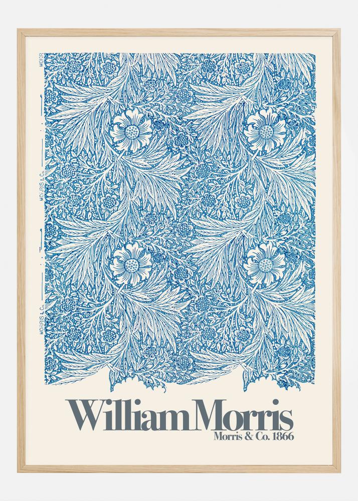 Ši afiša vaizduoja klasikinį William Morris šabloną pavadinimu "Marigold", sukurtą Morris & Co. apie 1866 m. Ikoniškas šablonas, žinomas dėl savo įmantrių ir gamtos įkvėptų elementų, yra atliktas gilios mėlynos spalvos su švariu, kreminės spalvos fonu. Kiekviena gėlių kompozicijos detalė yra kruopščiai išraižyta, rodant Morriso jausmą grožiui gamtoje ir gebėjimą tai paversti meno kūriniais, kurie yra amžini ir mėgstami net ir šiandien.