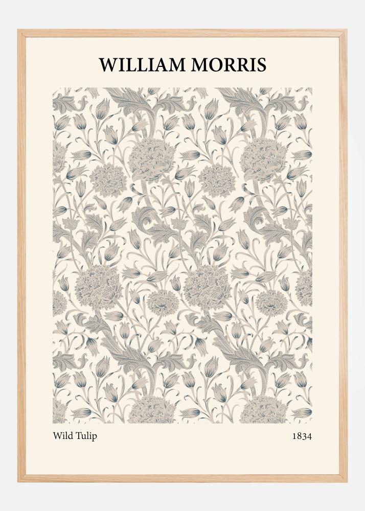Šis William Morris plakatas, pavadintas "Laukinė tulpė", yra elegantiška laukinių gėlių interpretacija, sukurta su dideliu meistriškumu ir dėmesiu. Raštas yra tulpių ir lapų labirintas, atliktas subtiliais smėlio spalvos ir pilkos atspalviais ant šilto, kremiško fono, todėl jis yra idealus darbas tiems, kurie nori sukurti atsipalaidavusią ir rafinuotą aplinką. Iliustracijų detalumas demonstruoja Morriso meistrišką ranką ir jo gebėjimą paversti kasdienes vaizdus į meną.