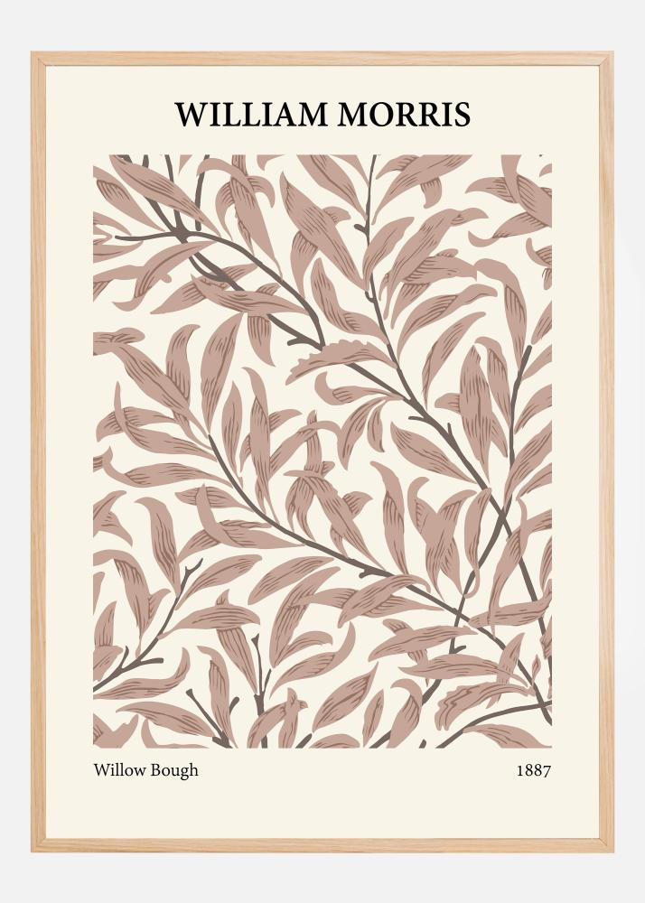 Šis plakato dizainas pagerbia William Morris' "Willow Bough" iš 1887 metų ir yra nuostabus Morris' įsipareigojimo natūralioms raštų motyvams pavyzdys. Lankstūs gluosnių lapai skleidžiasi ant kreminės spalvos fono, sukurdami harmoningą kontrastą, kuris yra ir raminantis, ir estetiškai patrauklus. Rudos ir smėlinės atspalviai perteikia šilumos jausmą, būdingą Morris' darbams.