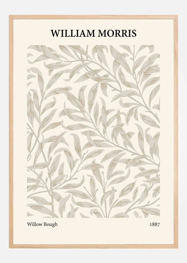 Šis žavus plakatas pristato Williamo Morriso ikoninį raštą „Willow Bough“ iš 1887 m., kuris yra pagarbos išraiška ramiai Anglijos gamtos grožiui. Raštas su savo šokančiais gluosnio lapais yra meistriškas Morriso talento įkūnijimas, pagautas gamtos judesių ir formų jo kūriniuose. Raminanti švelnių žalių ir kreminės baltos atspalvių paletė suteikia malonų ir atsipalaidavusį įspūdį, primenantį taikų sodą.