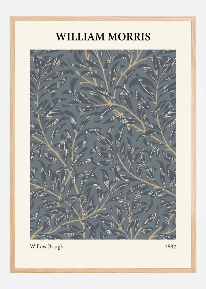 Tai akis traukiantis plakatas, kuriame išryškintas klasikinis William Morris "Willow Bough" raštas nuo 1887 metų. Grakščiai suformuoti gluosnio lapai yra sumaniai pavaizduoti mėlynos ir pilkos atspalviais, kurie elegantiškai kontrastuoja su linijomis šilto aukso tono. Šis derinys suteikia turtingumą ir gylį bendrai dizaino koncepcijai ir liudija Morris meistriškumą bei jo nuolatinę įtaką modelių dizaino srityje.