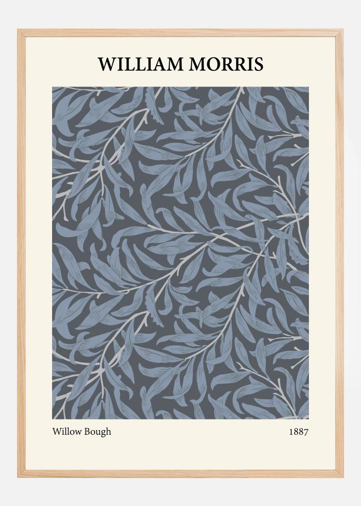 Šis plakatas yra gražus William Morris dizaino "Willow Bough" iš 1887 metų vaizdavimas, perteikiantis. grakščią gluosnio lapų formą rafinuotoje mėlynai pilkų atspalvių paletėje. Šis raštas puikiai iliustruoja Morris’ gebėjimą derinti estetiką su gamtos motyvais, sukuriant ramią ir jaukią įspūdį, kuris tinka įvairiems interjero stiliams.