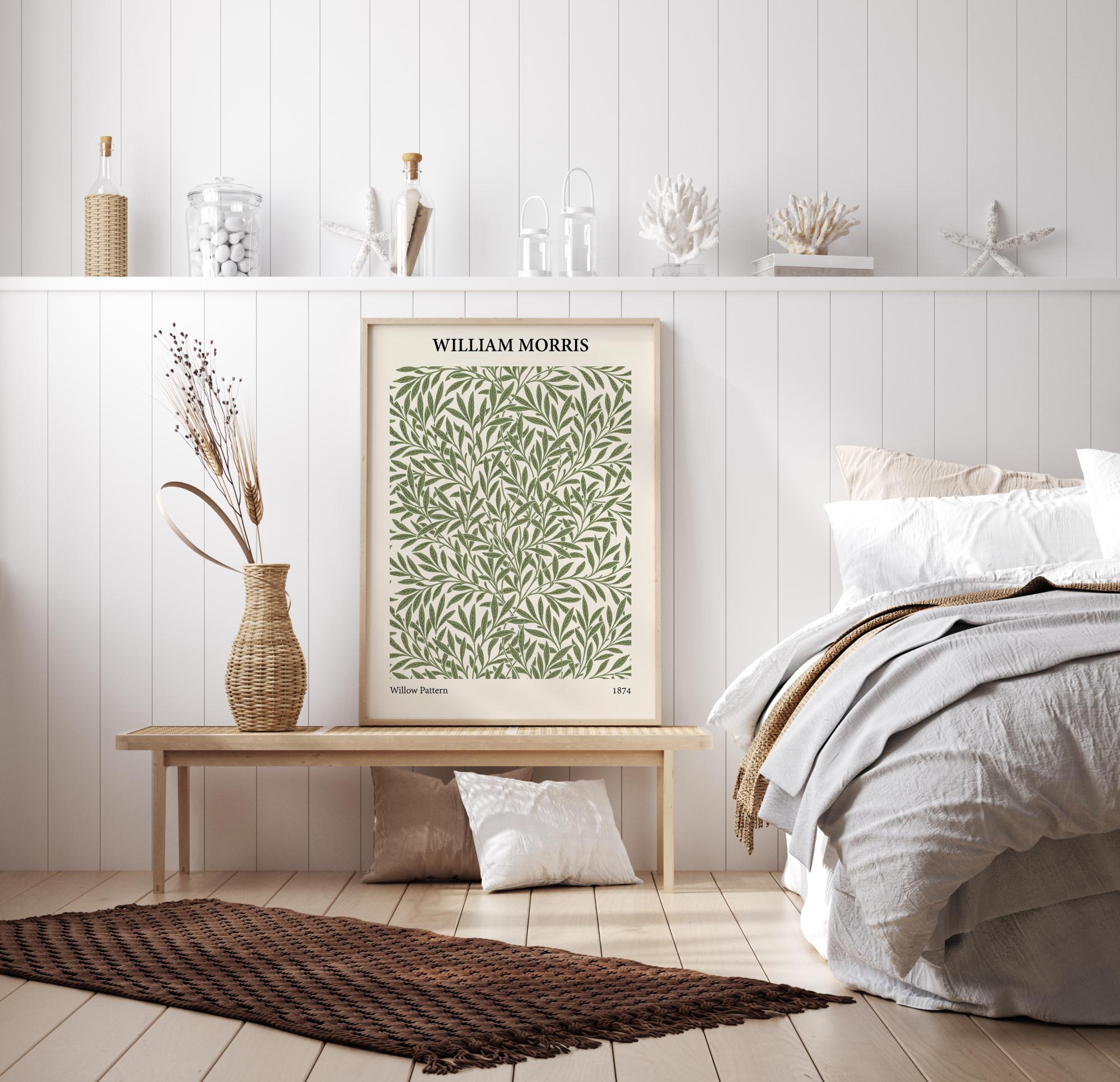 Williamo Morriso gluosnio rašto rašto spauda. Tamsiai žali lapai yra stiprūs ir persidengia tarpusavyje, kad sukurtų gyvybingą spaudą. Leiskite akims atsipalaiduoti ir priimti šį natūralų dizainą, kuris yra puikus būdas atnešti gamtą į namus.