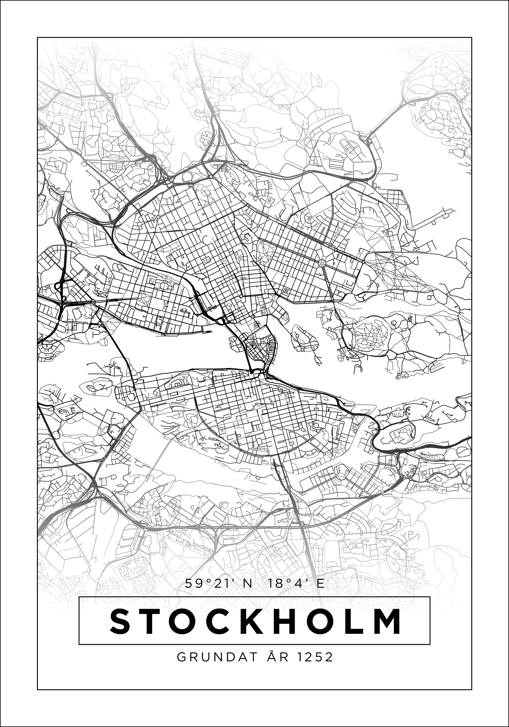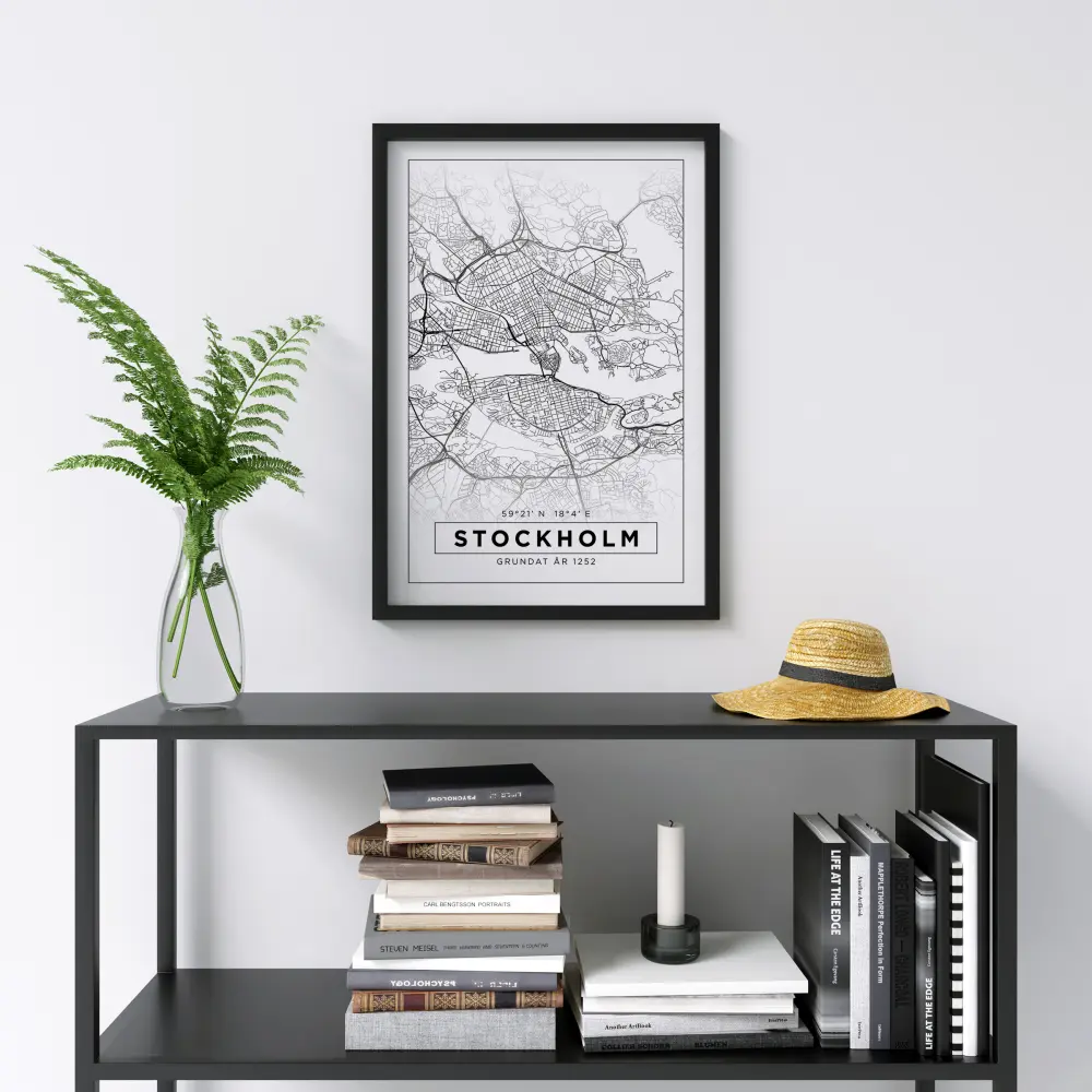 Skirkite Stokholmui garbingiausią vietą ant sienos, kai dekoruojate su šiuo stilingu plakatu! Motyvas rodo juodą miesto žemėlapį ant balto fono. Apačioje rasite tekstą „Stokholmas, įkurtas 1252 metais“ kartu su koordinatėmis. Aplink miesto pavadinimą ir motyvą tęsiasi juodos, plonos linijos. Pasirinkite iš net 7 skirtingų formatų!