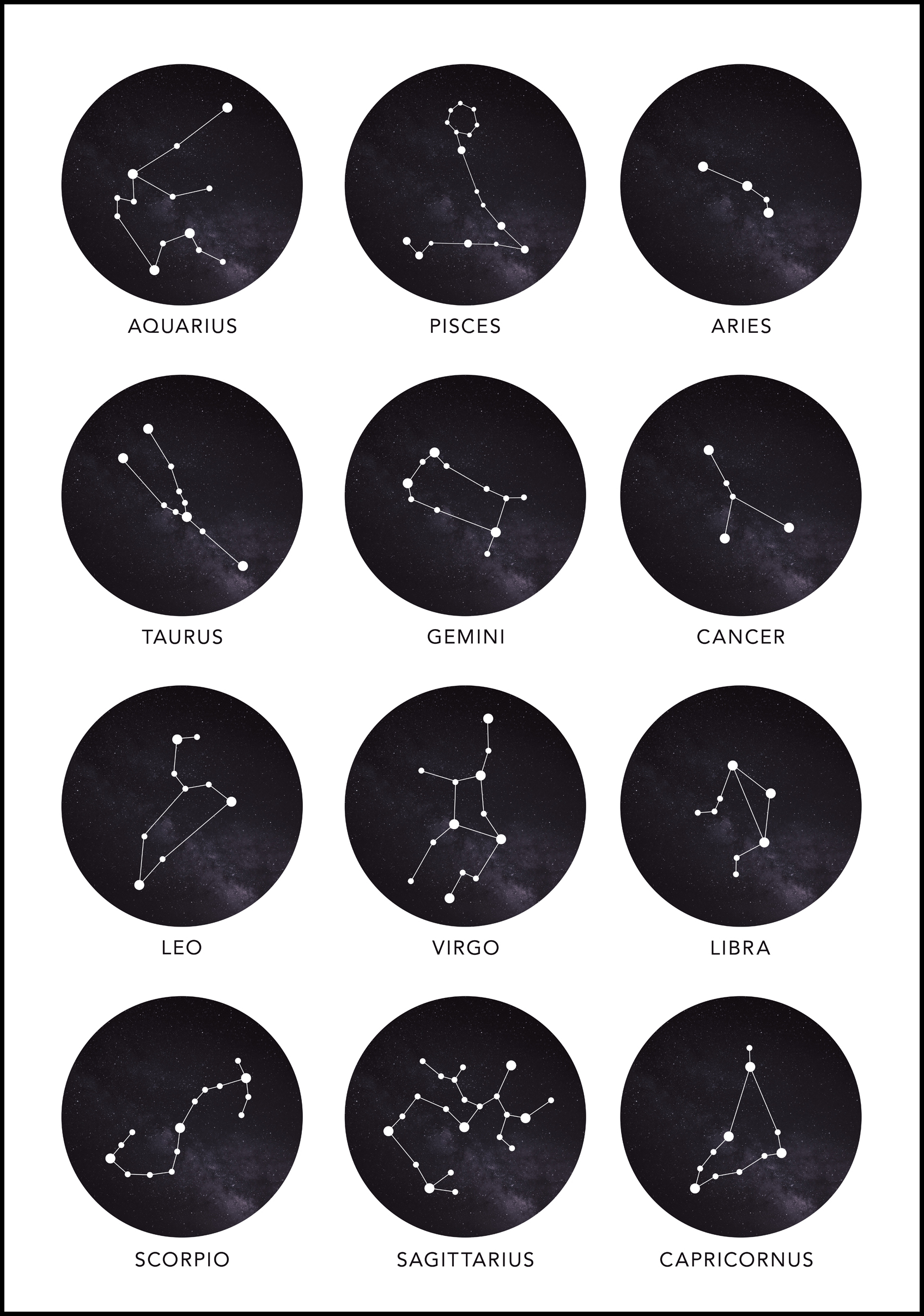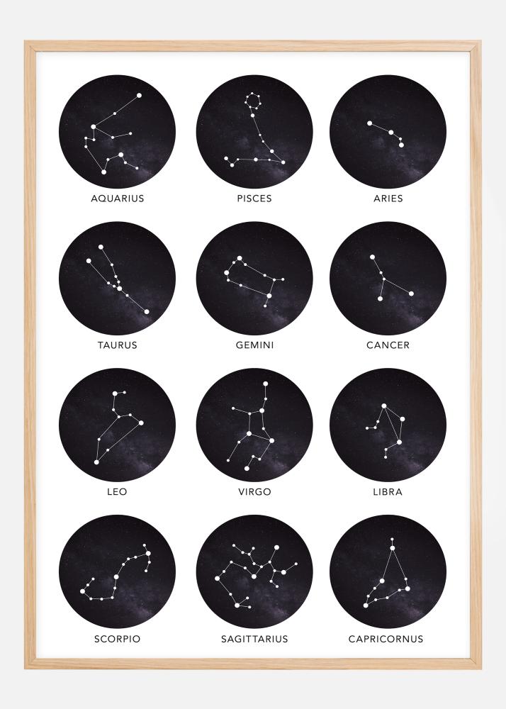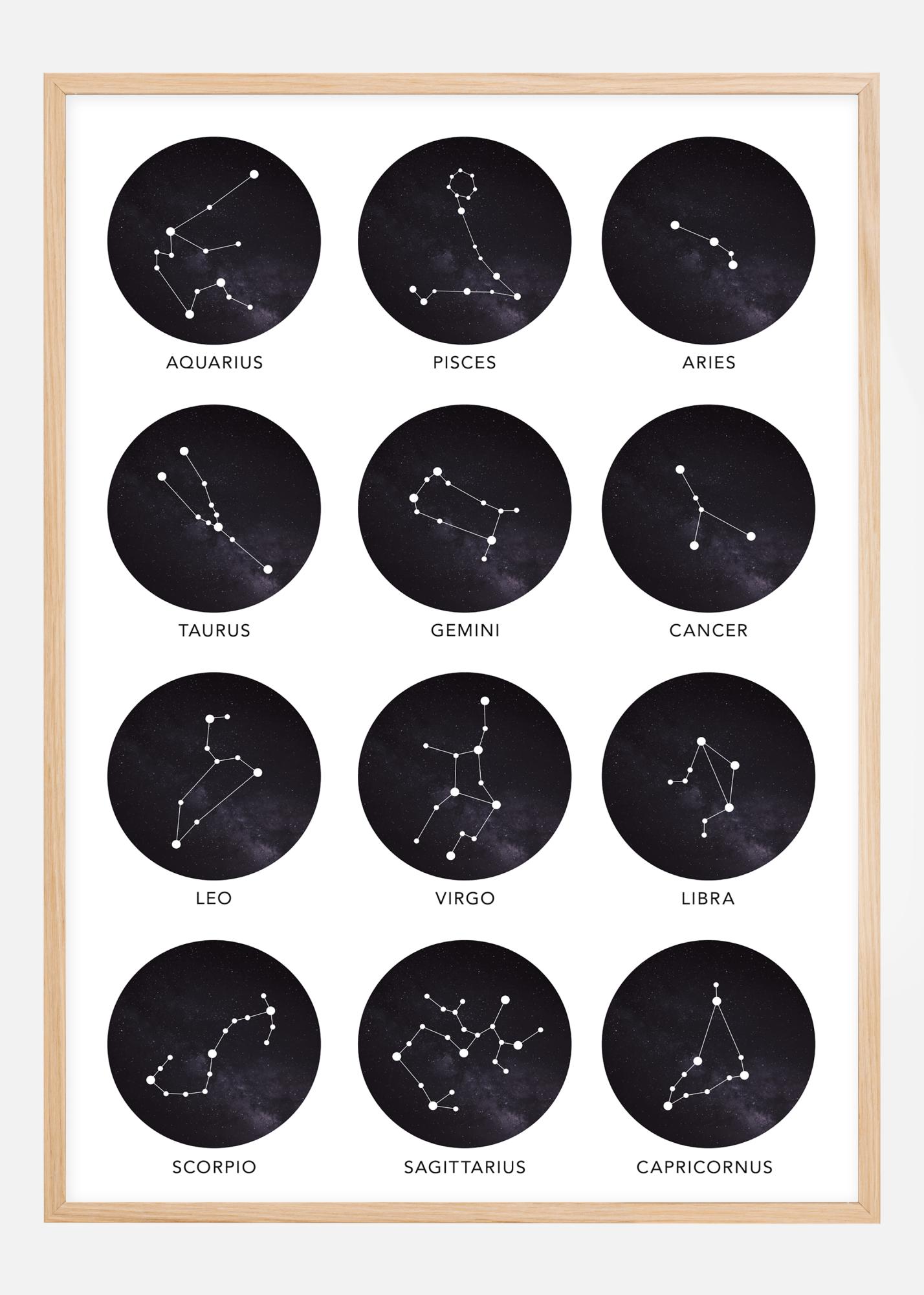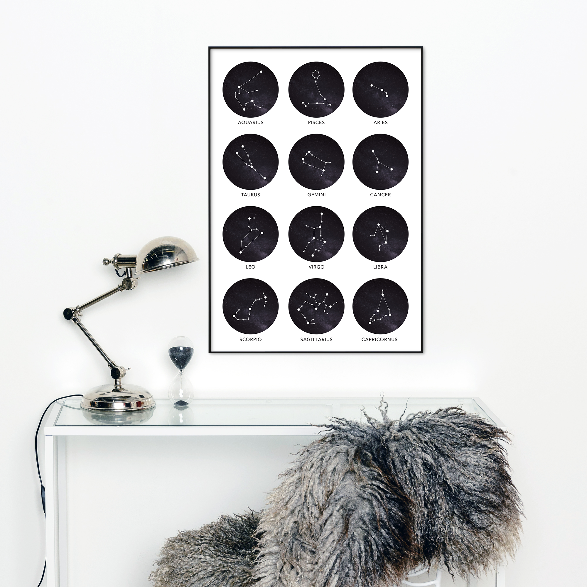 Padovanokite plakatu su zodiako ženklu tam, kurį mylite, arba palepinkite save kažkuo gražiu. Šis stilingas plakatas vaizduoja visus zodiako ženklus, o po vaizdu yra ženklų pavadinimai anglų kalba. Nepamirškite pasirinkti plakato derančio rėmo!